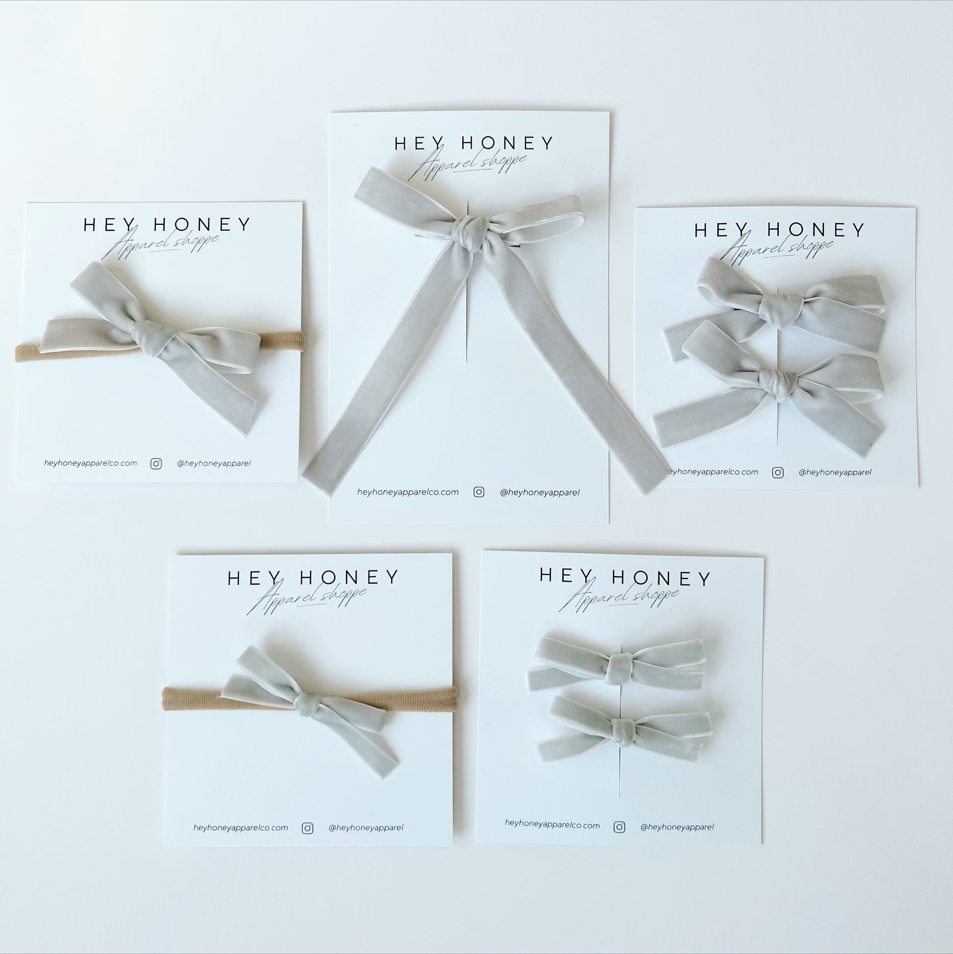 The Margot comes in 3 sizes. Oversized, Classic and Mini. The Oversized only comes on a reversible Alligator Clip and the Classic and Mini come in a pigtail set or nylon headband.